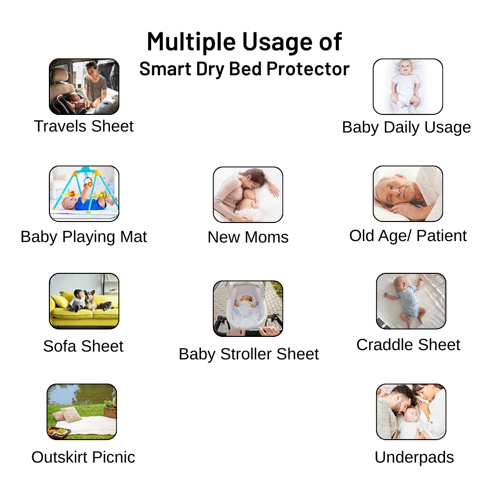 From unexpected spills to midnight accidents, from unseen allergens to dust mites, fungus, and bacteria — this dry sheet protects what you cannot always see, but always worry about. It keeps the mattress clean and dry, so your baby stays undisturbed, wrapped in comfort and care.